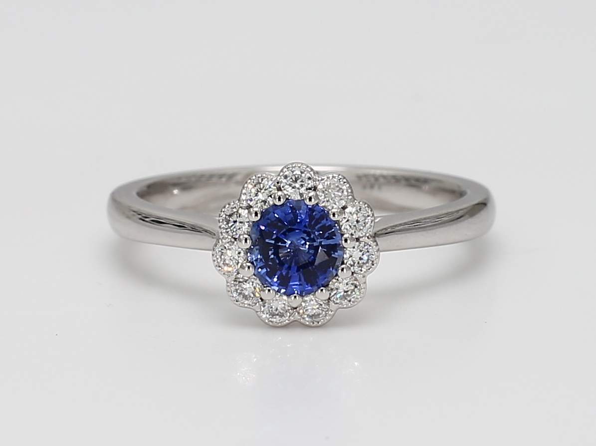 ROUND SAPPHIRE & ROUND DIAMOND 14KW RING