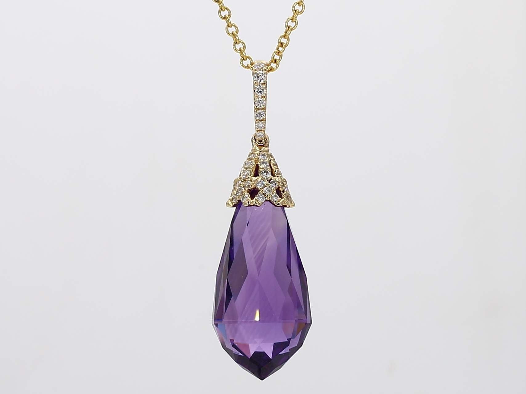 BRIOLETTE AMETHYST & ROUND DIAMOND 14KY PENDANT