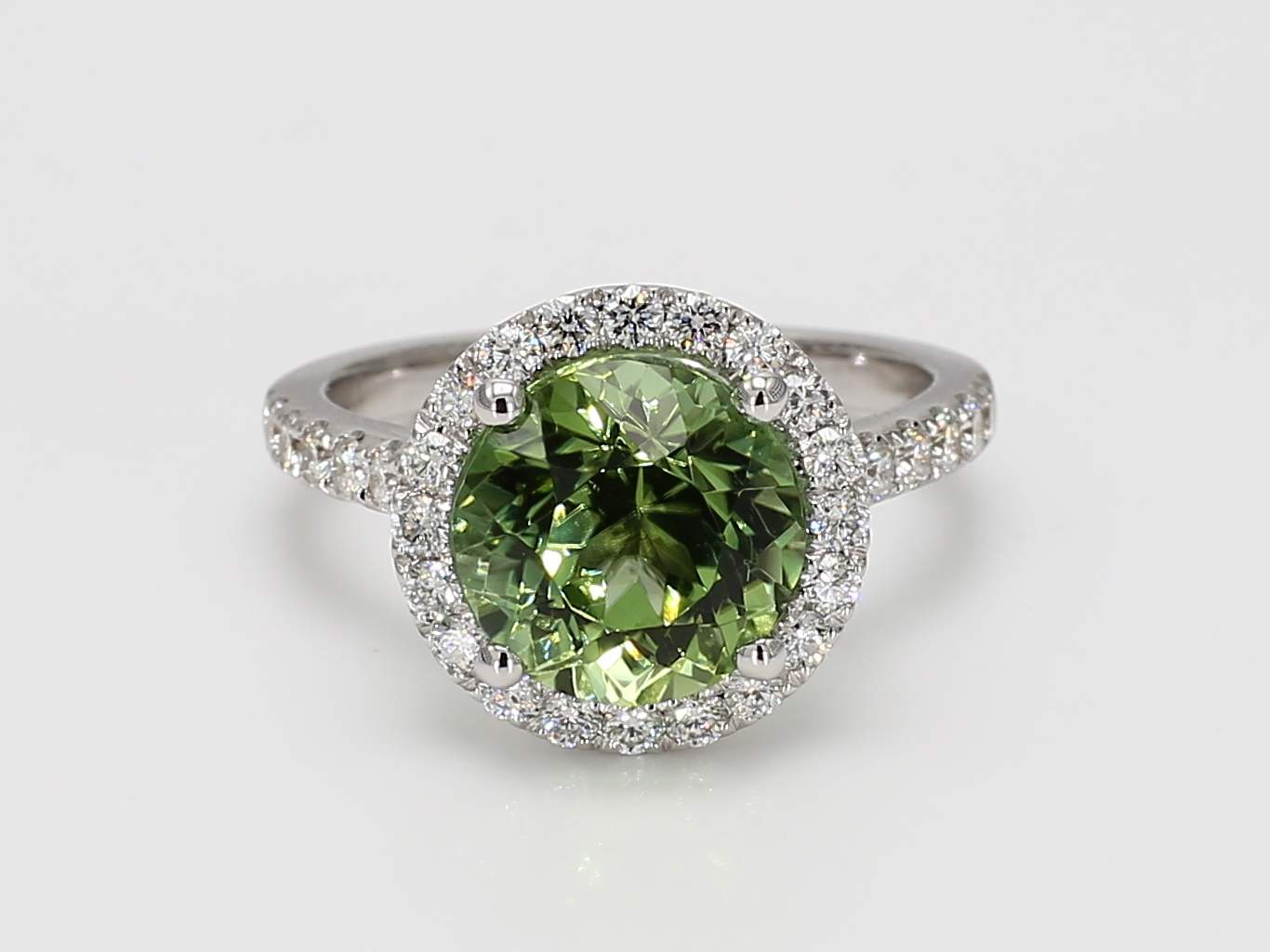 ROUND GREEN TOURMALINE & ROUND DIAMOND 14KW RING