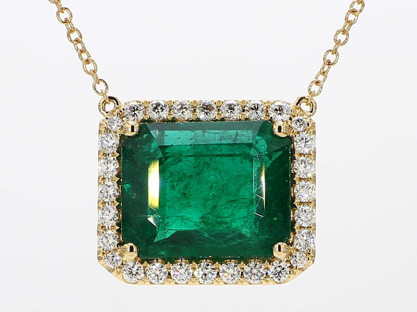 EMERALD CUT EMERALD & ROUND DIAMOND 18KY NECKLACE