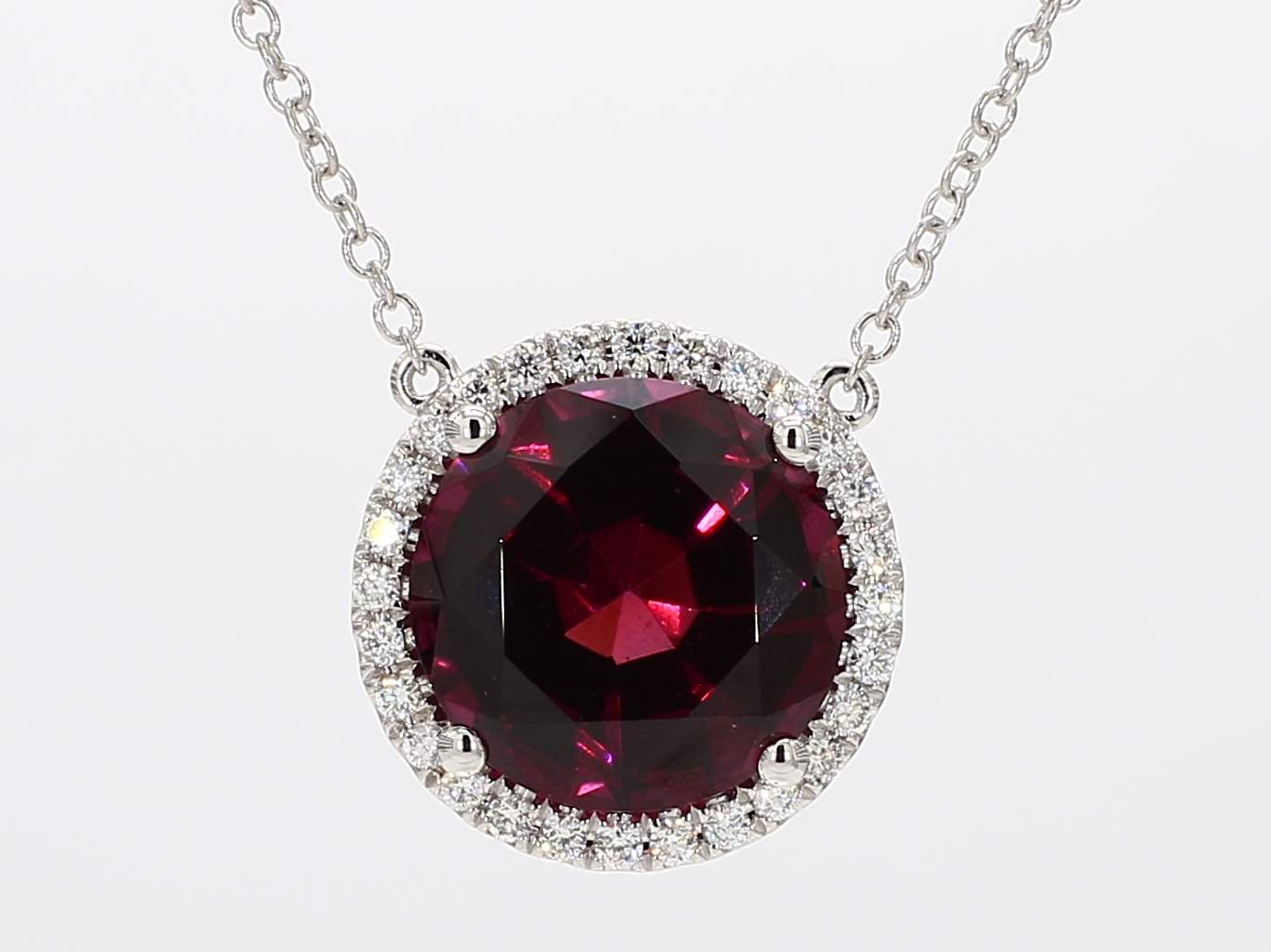 ROUND RHODOLITE GARNET & ROUND DIAMOND 14KW NECKLACE