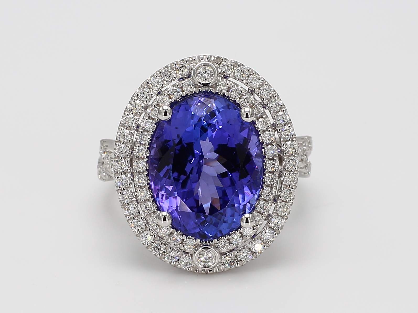 OVAL TANZANITE & ROUND DIAMOND 14KW RING