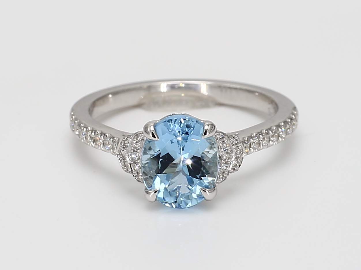 OVAL AQUAMARINE & ROUND DIAMOND 14KW RING