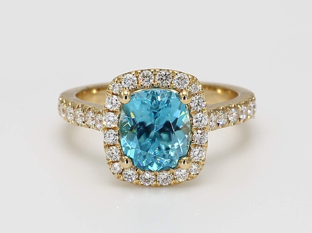 CUSHION ZIRCON & ROUND DIAMOND 14KY RING