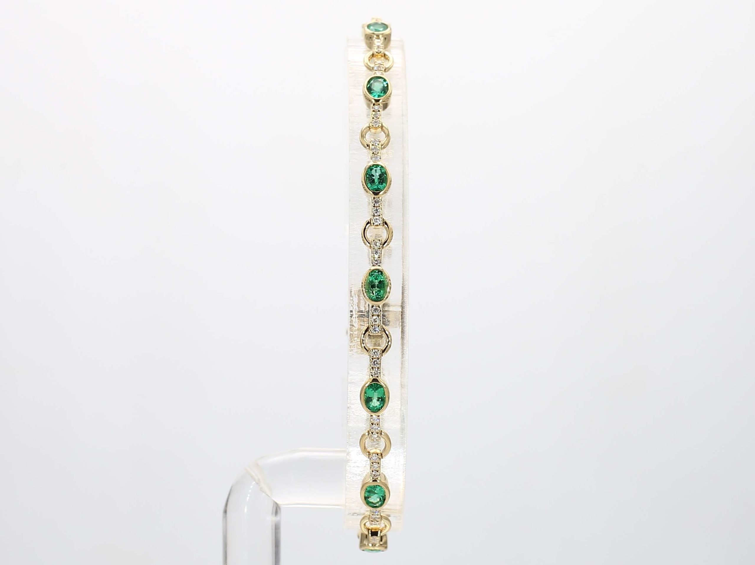 OVAL EMERALD & ROUND DIAMOND 14KY BRACELET