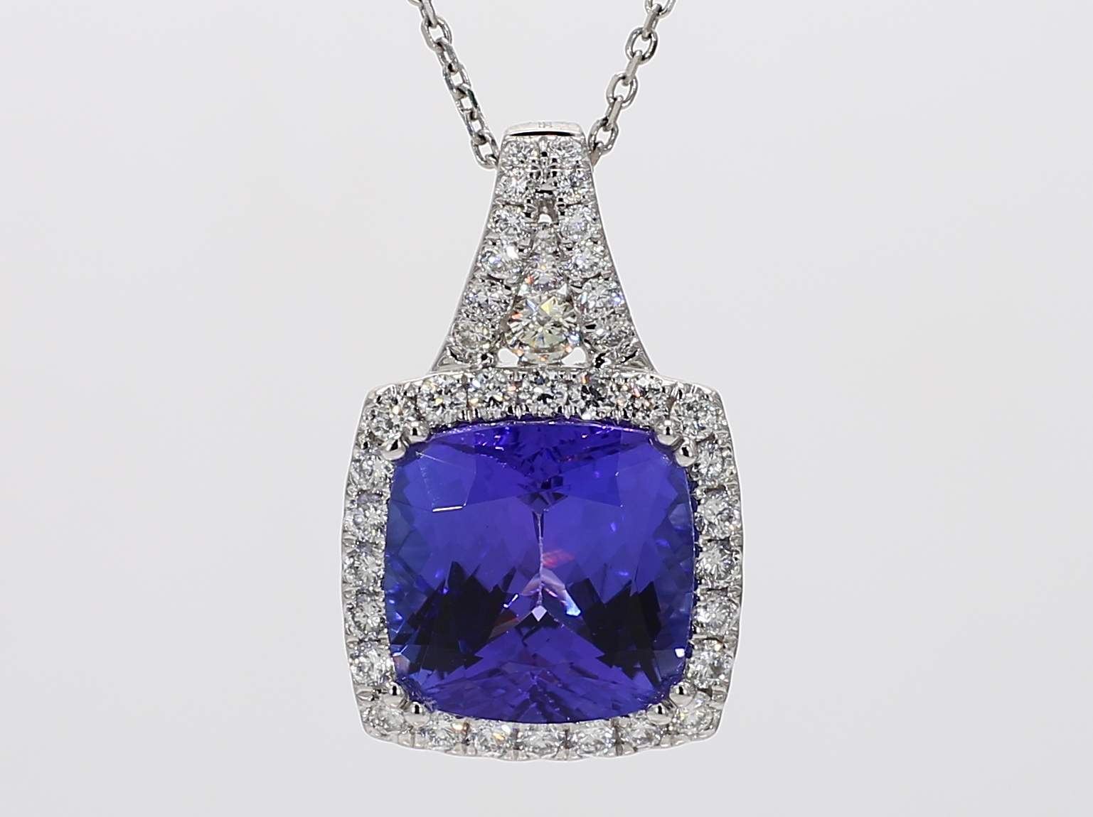 CUSHION TANZANITE & ROUND DIAMOND 14KW PENDANT