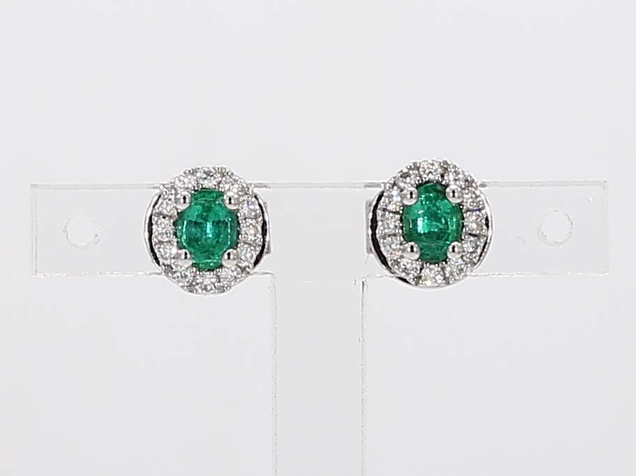 OVAL EMERALD & ROUND DIAMOND 14KW EARRING