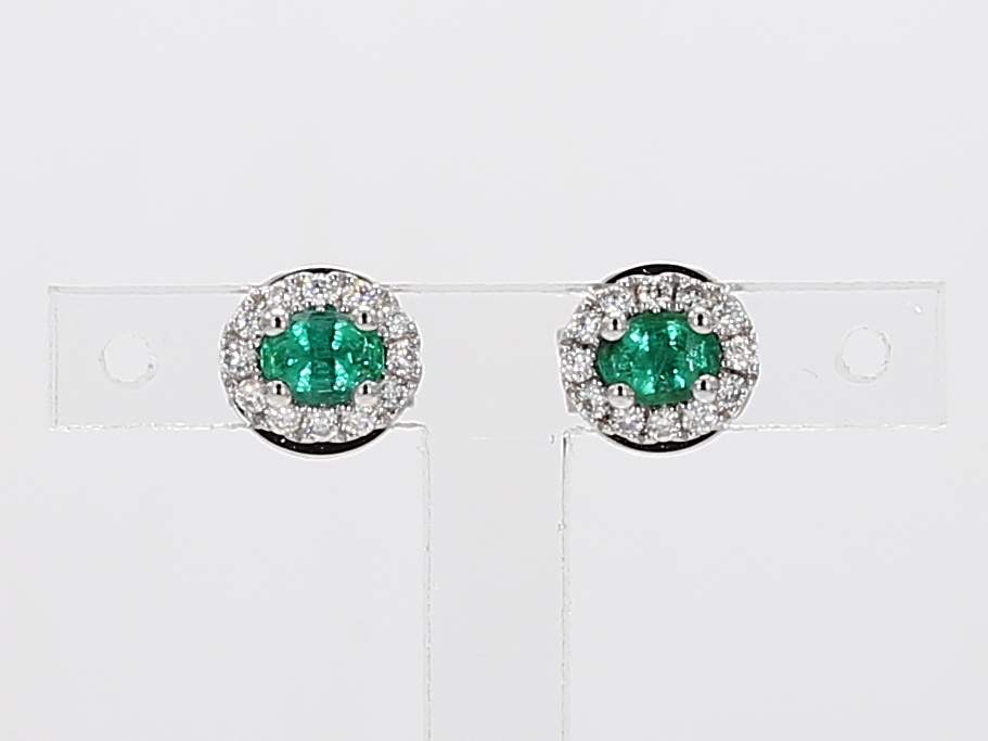 OVAL EMERALD & ROUND DIAMOND 14KW EARRING