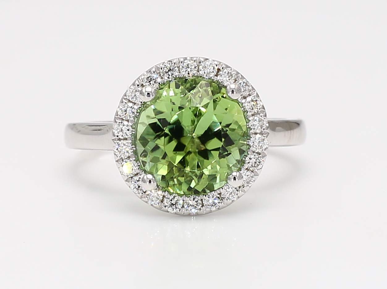 ROUND GREEN TOURMALINE & ROUND DIAMOND 14KW RING