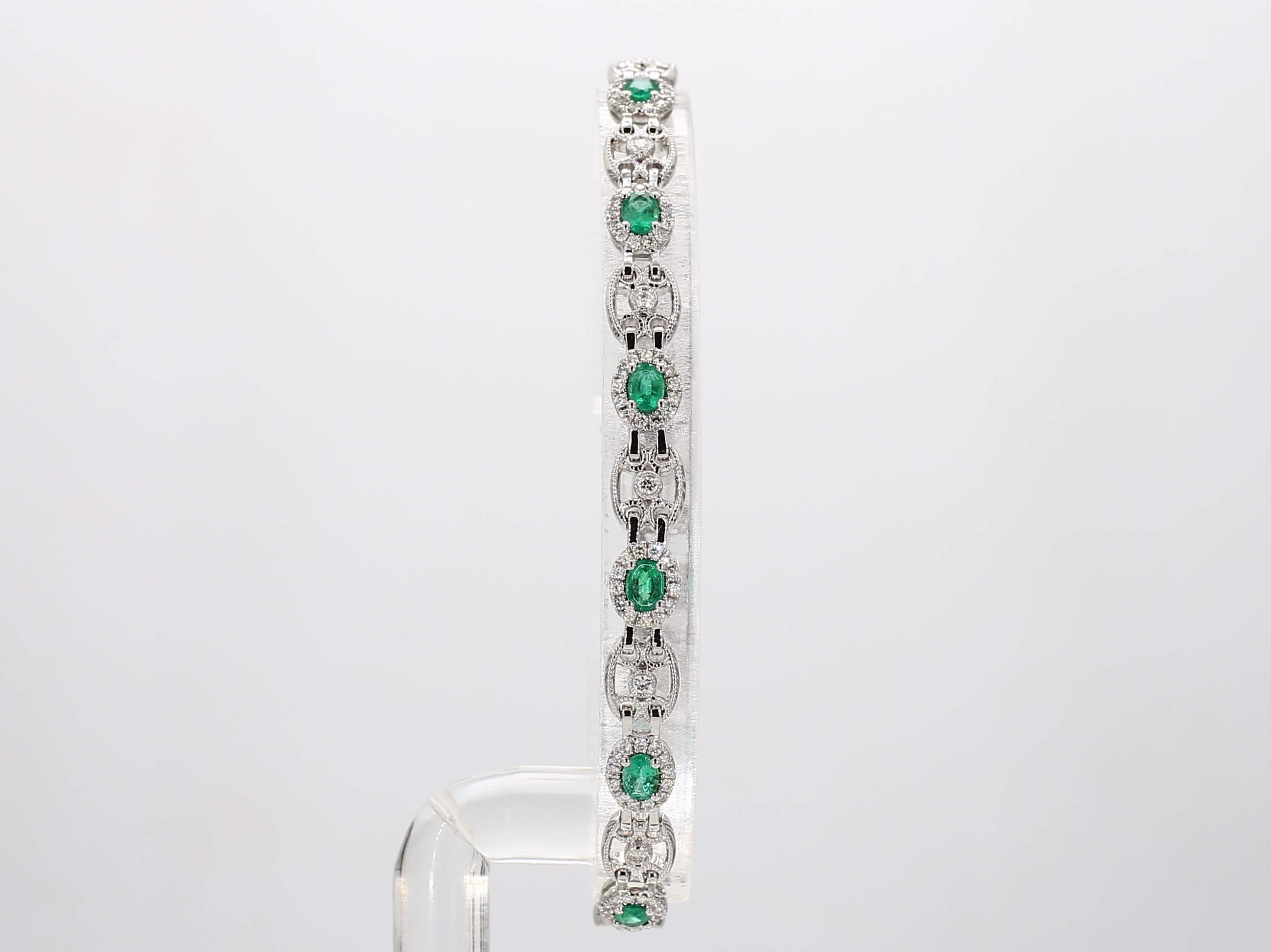 OVAL EMERALD & ROUND DIAMOND 14KW BRACELET
