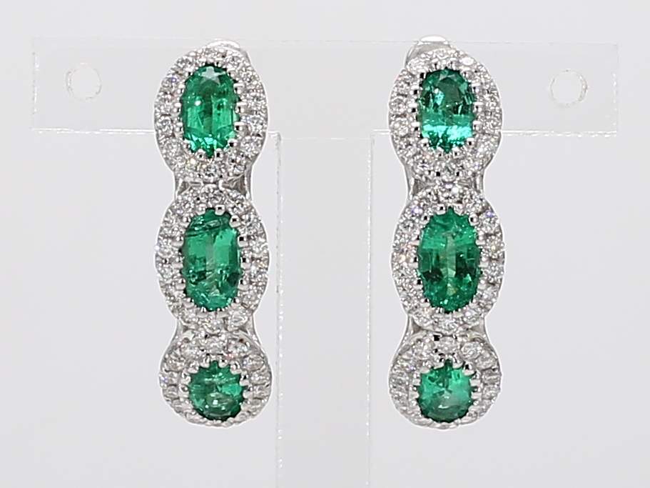 OVAL EMERALD & ROUND DIAMOND 14KW EARRING
