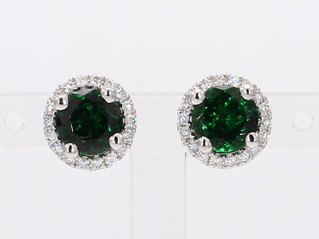 ROUND TSAVORITE GARNET & ROUND DIAMOND 18KW EARRING