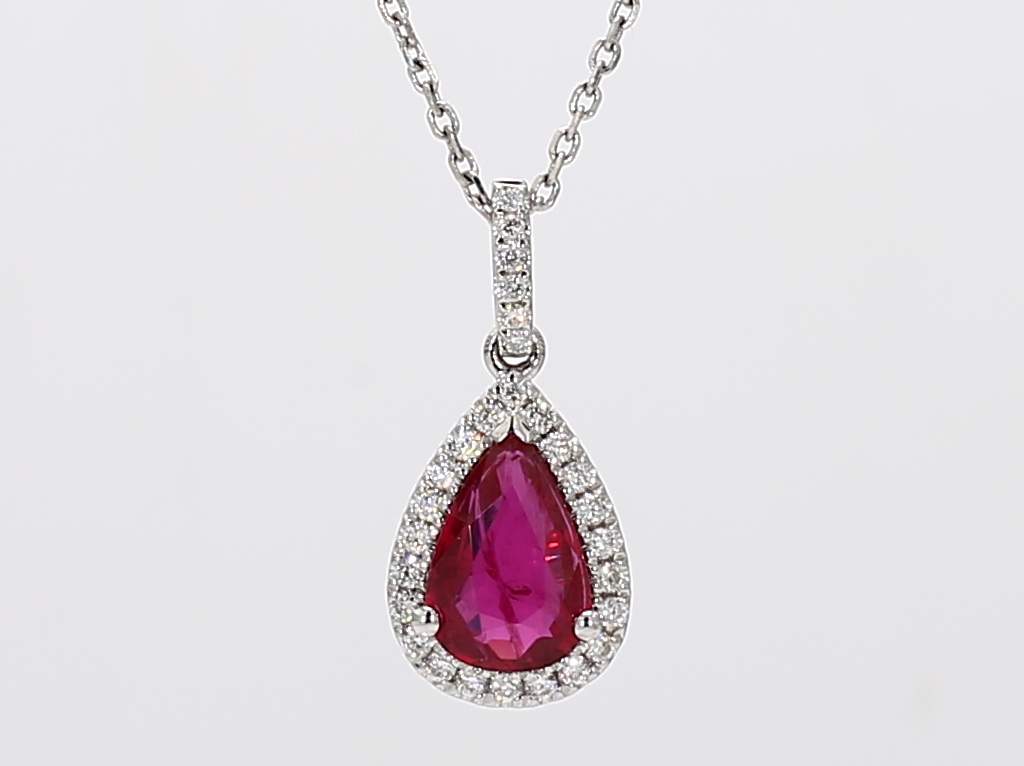 PEAR SHAPE RUBY & ROUND DIAMOND 14KW PENDANT
