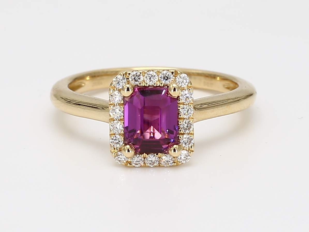 EMERALD CUT PINK SAPPHIRE & ROUND DIAMOND 14KY RING