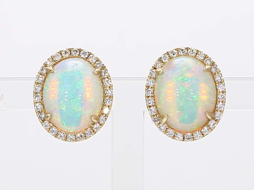 OVAL OPAL & ROUND DIAMOND 14KY EARRING
