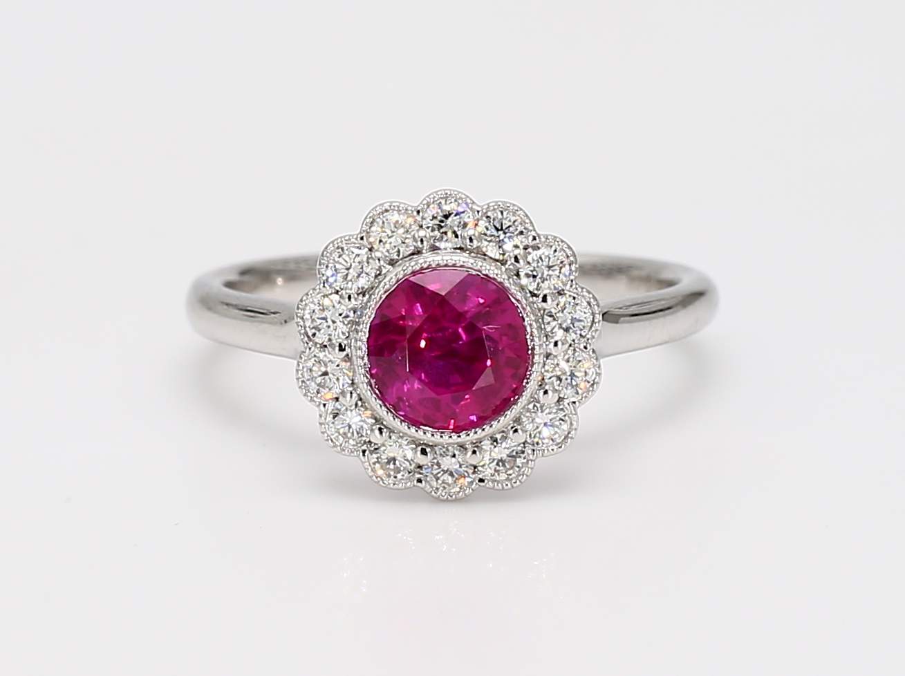 ROUND RUBY & ROUND DIAMOND 18KW RING