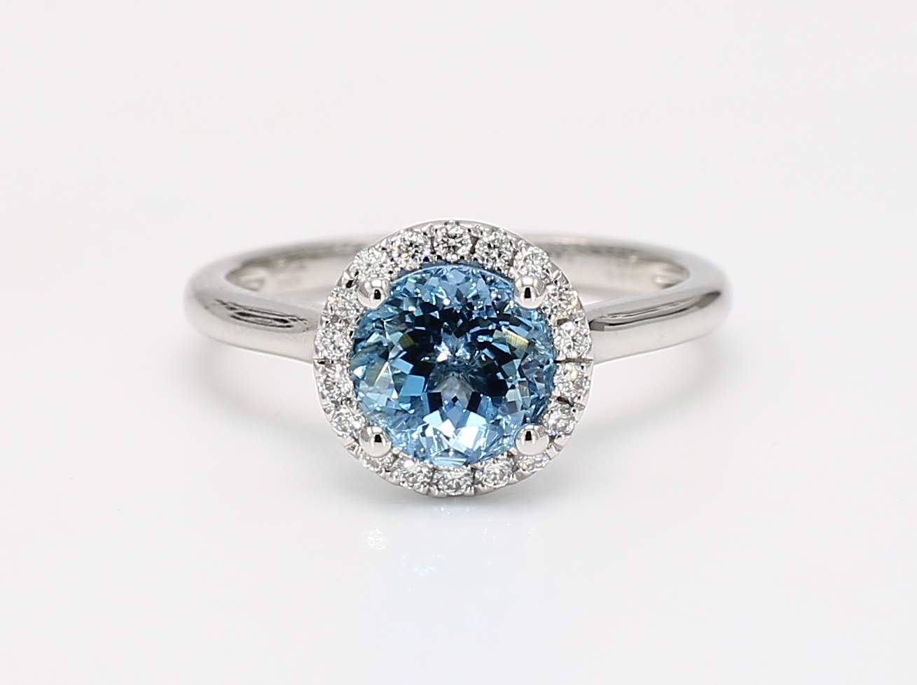 ROUND AQUAMARINE & ROUND DIAMOND 14KW RING