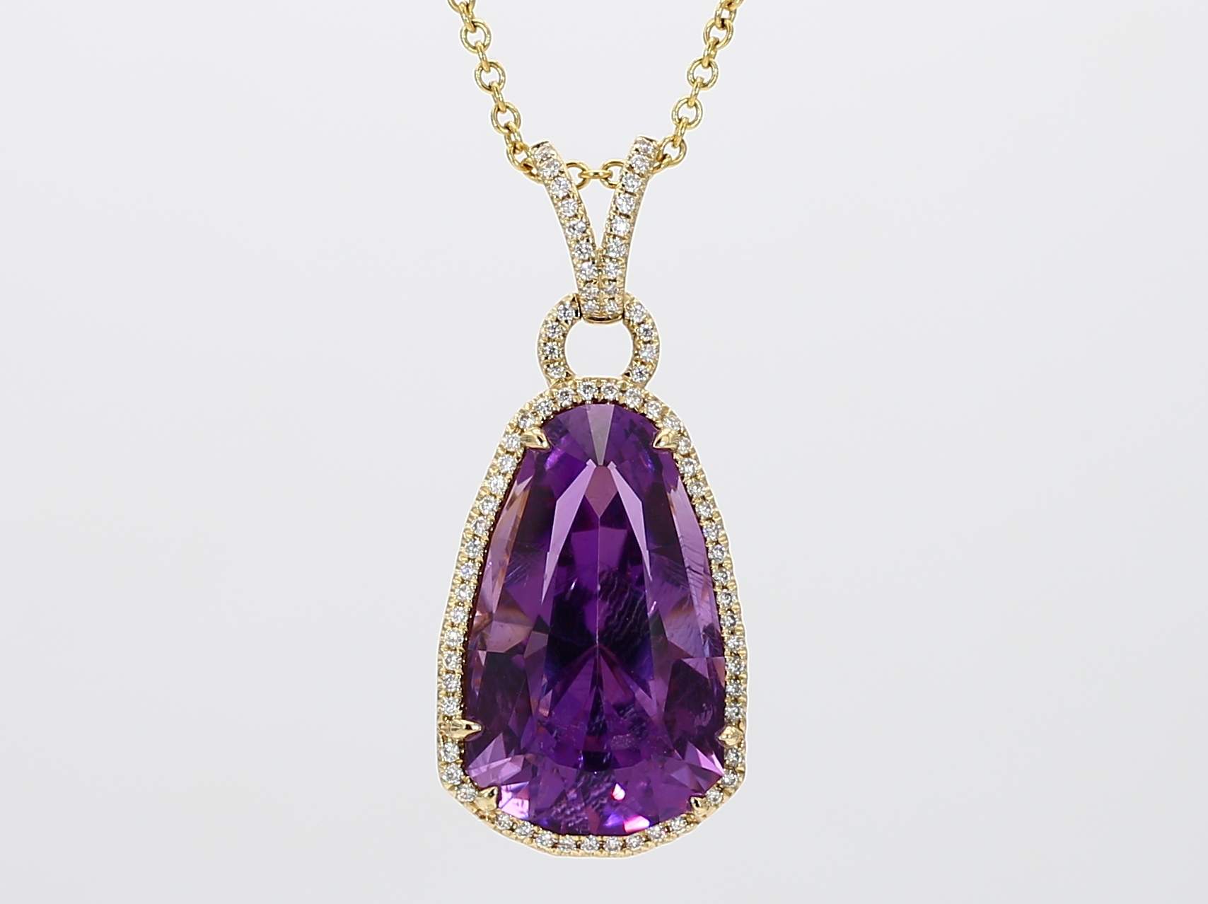 SHIELD AMETHYST & ROUND DIAMOND 14KY PENDANT