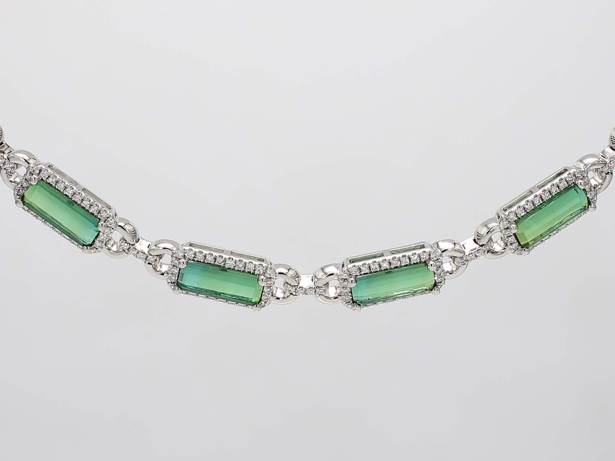 EMERALD CUT GREEN TOURMALINE & ROUND DIAMOND 14KW NECKLACE