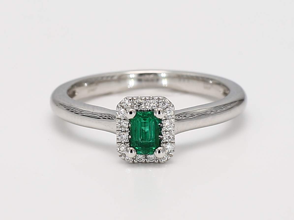 EMERALD CUT EMERALD & ROUND DIAMOND 18KW RING