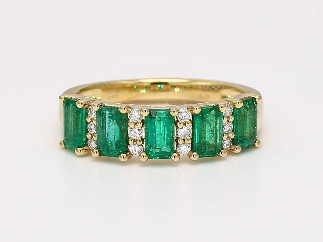 EMERALD CUT EMERALD & ROUND DIAMOND 18KY BAND