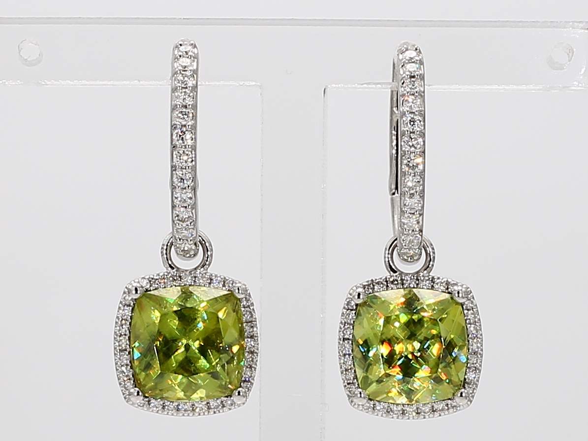 CUSHION SPHENE & ROUND DIAMOND 14KW EARRING