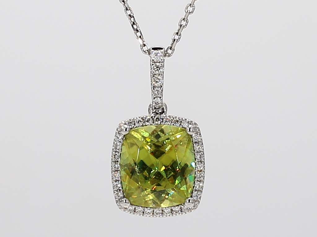 CUSHION SPHENE & ROUND DIAMOND 14KW PENDANT