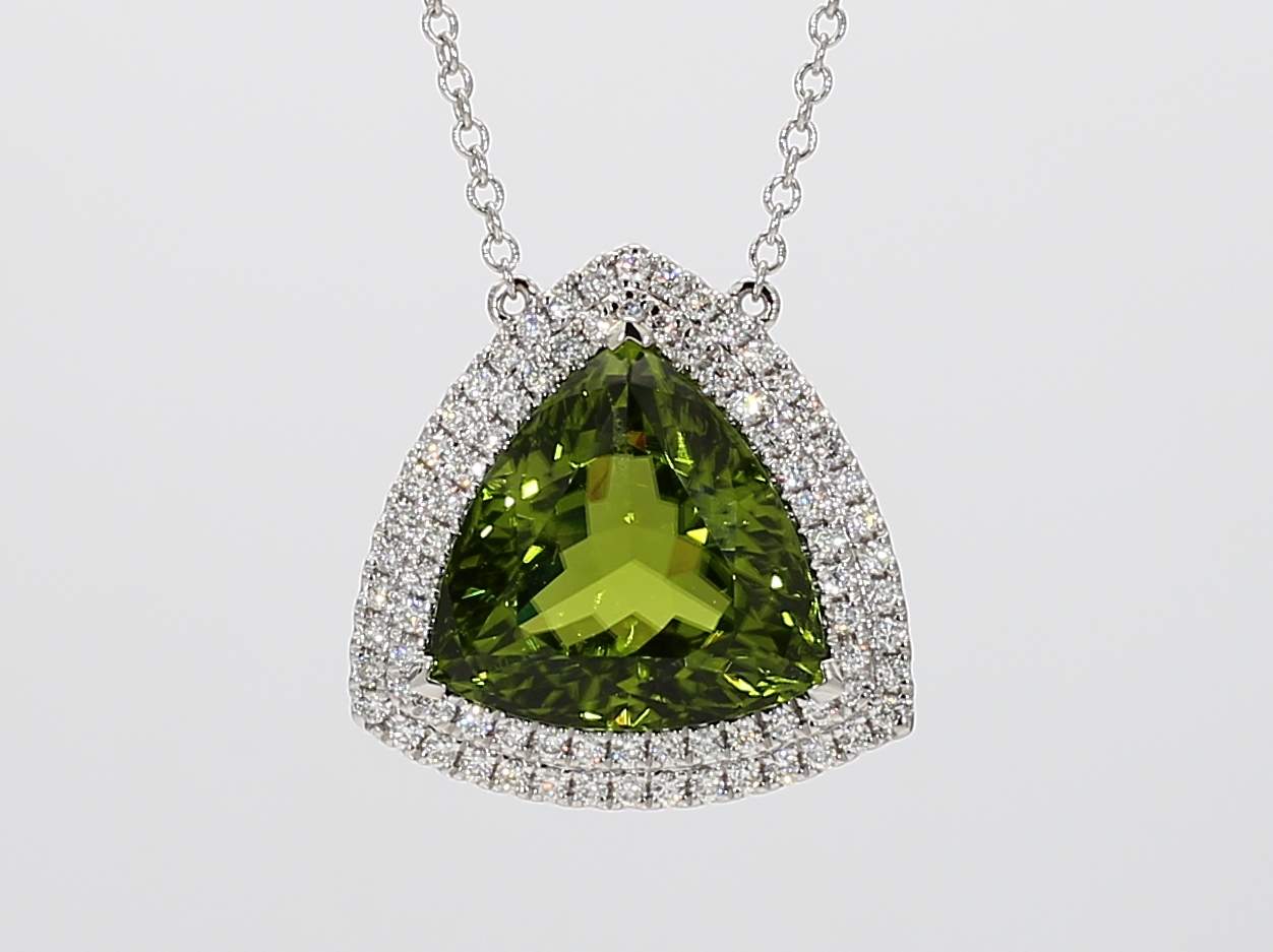 TRILLION PERIDOT & ROUND DIAMOND 14KW NECKLACE