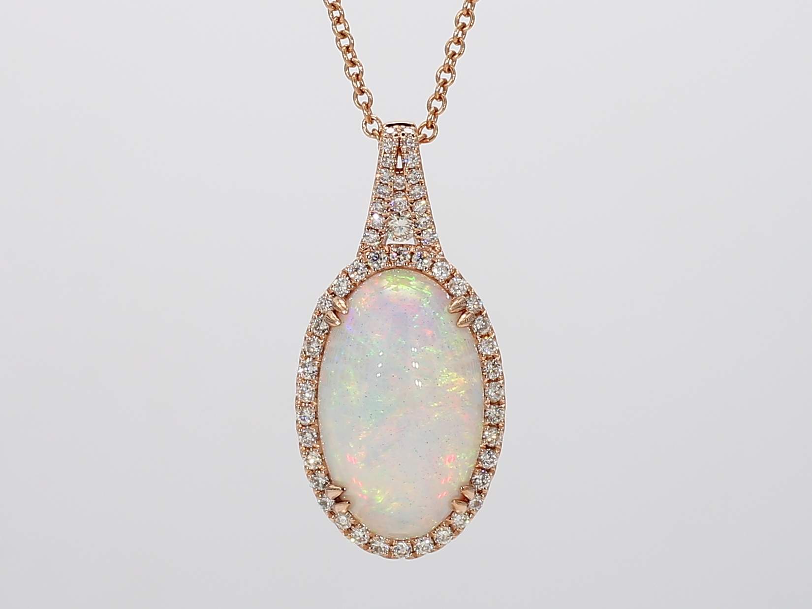 OVAL OPAL & ROUND DIAMOND 14KR PENDANT