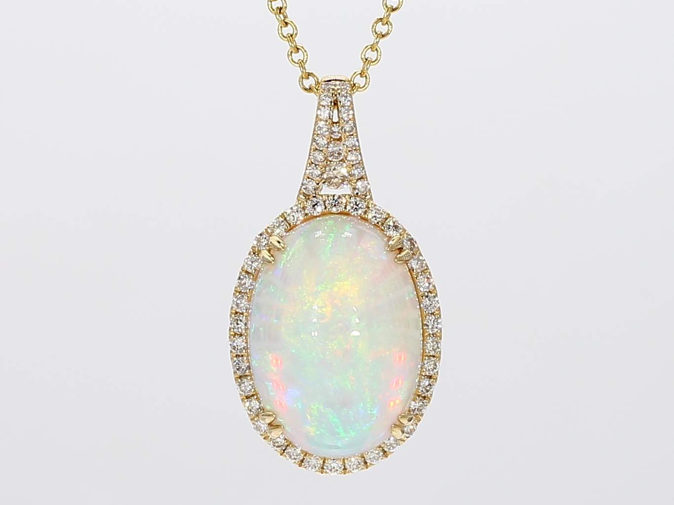 OVAL OPAL & ROUND DIAMOND 14KY PENDANT
