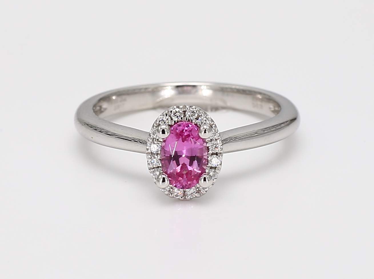OVAL UNHEATED PINK SAPPHIRE & ROUND DIAMOND PLATINUM RING