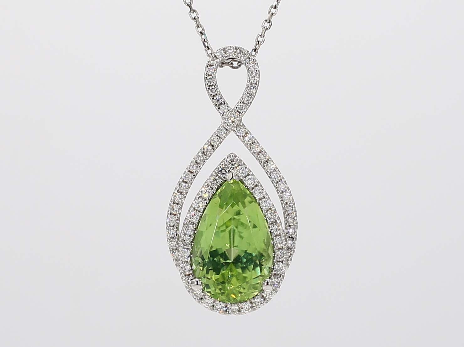 PEAR SHAPE PERIDOT & ROUND DIAMOND 14KW PENDANT