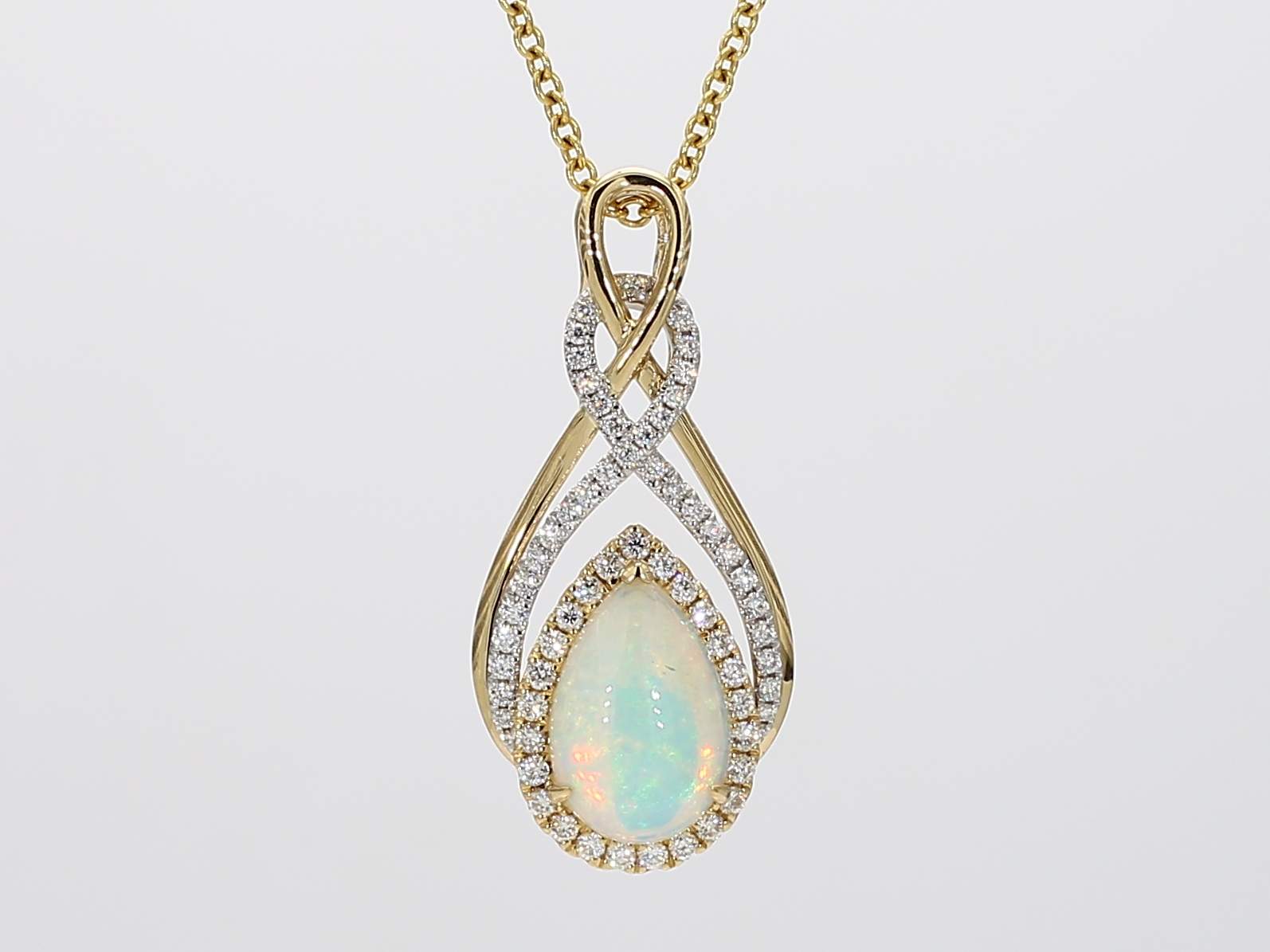 PEAR SHAPE OPAL & ROUND DIAMOND 14KT PENDANT