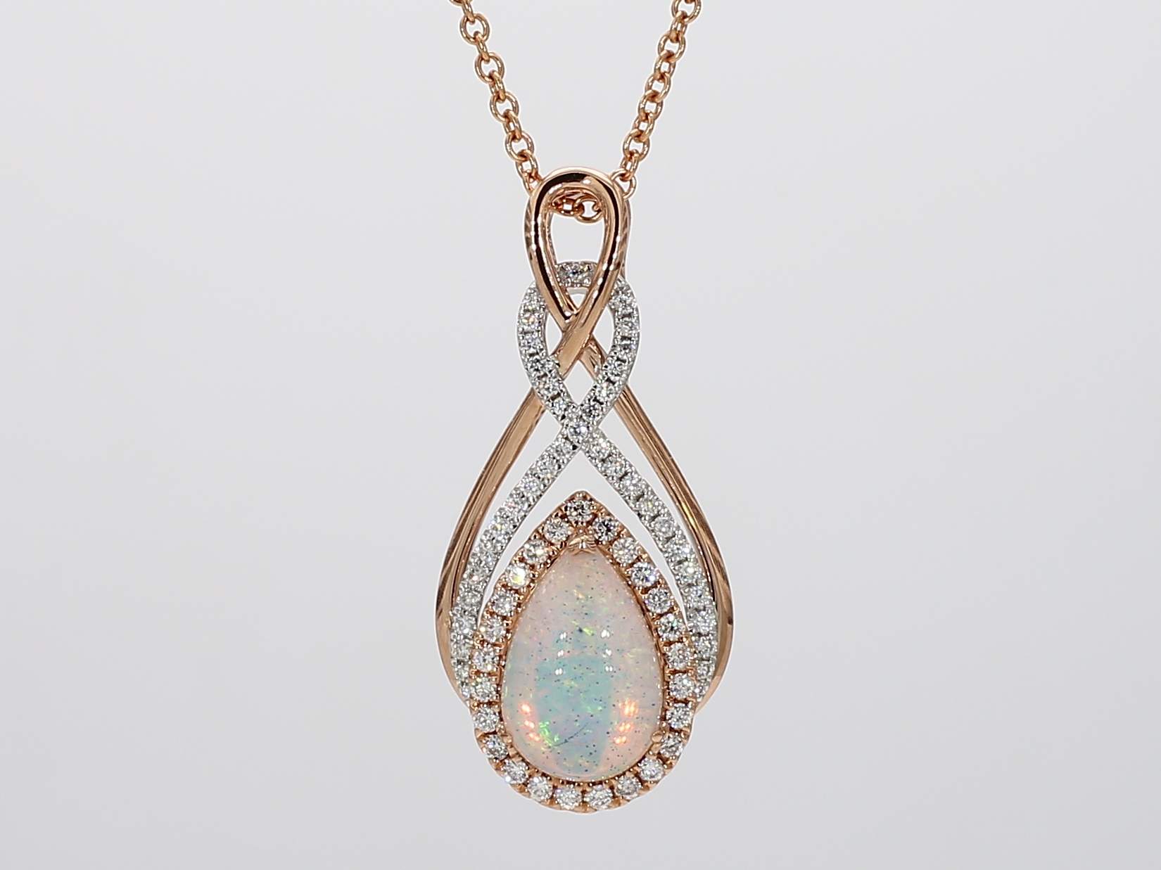 PEAR SHAPE OPAL & ROUND DIAMOND 14KT PENDANT