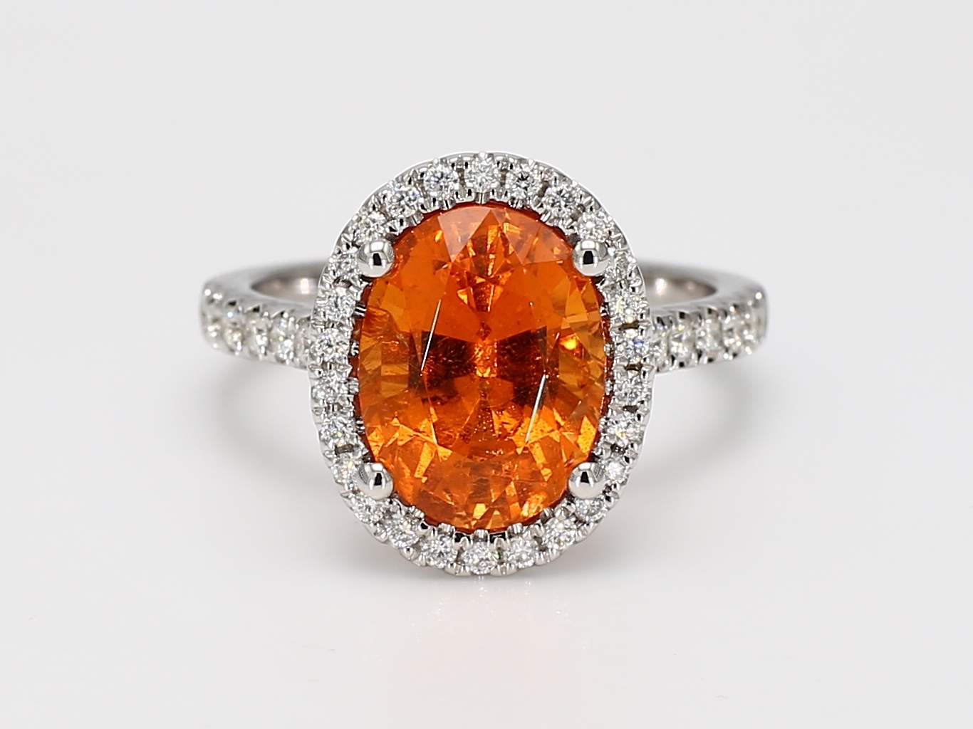 OVAL MANDARIN GARNET & ROUND DIAMOND 14KW RING