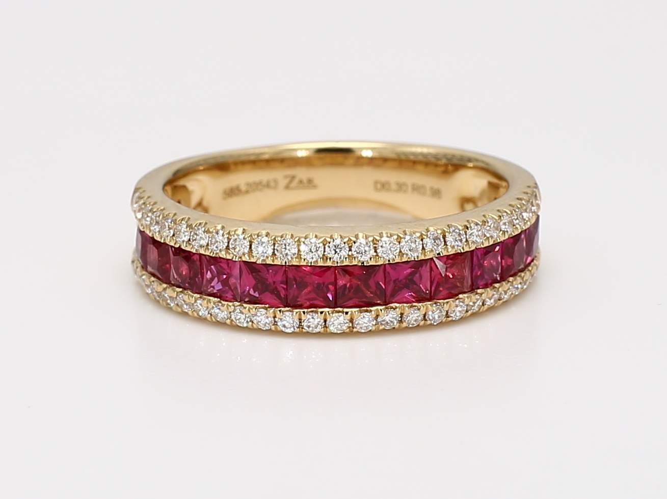PRINCESS CUT RUBY & ROUND DIAMOND 14KY BAND