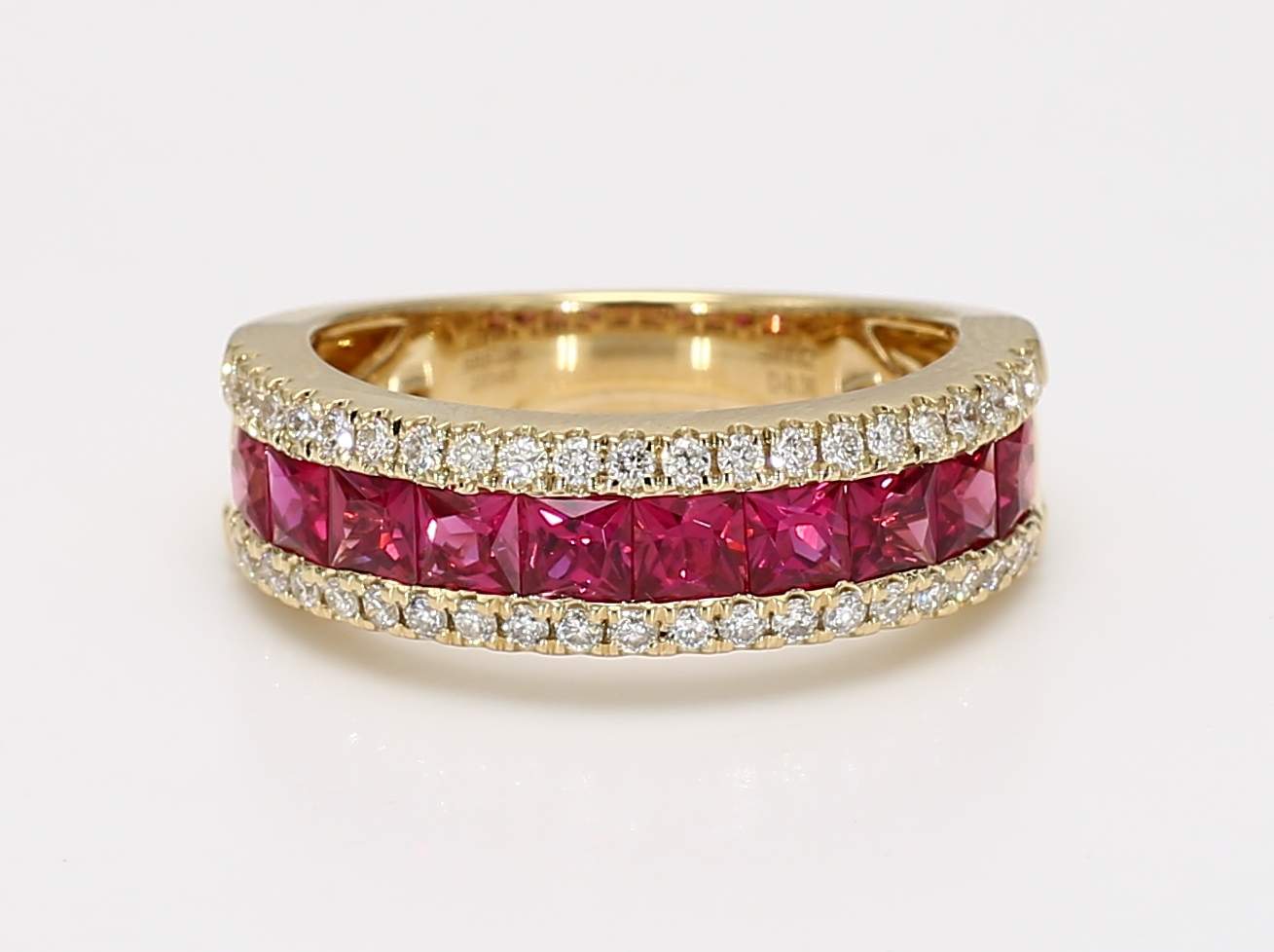 PRINCESS CUT RUBY & ROUND DIAMOND 14KY BAND