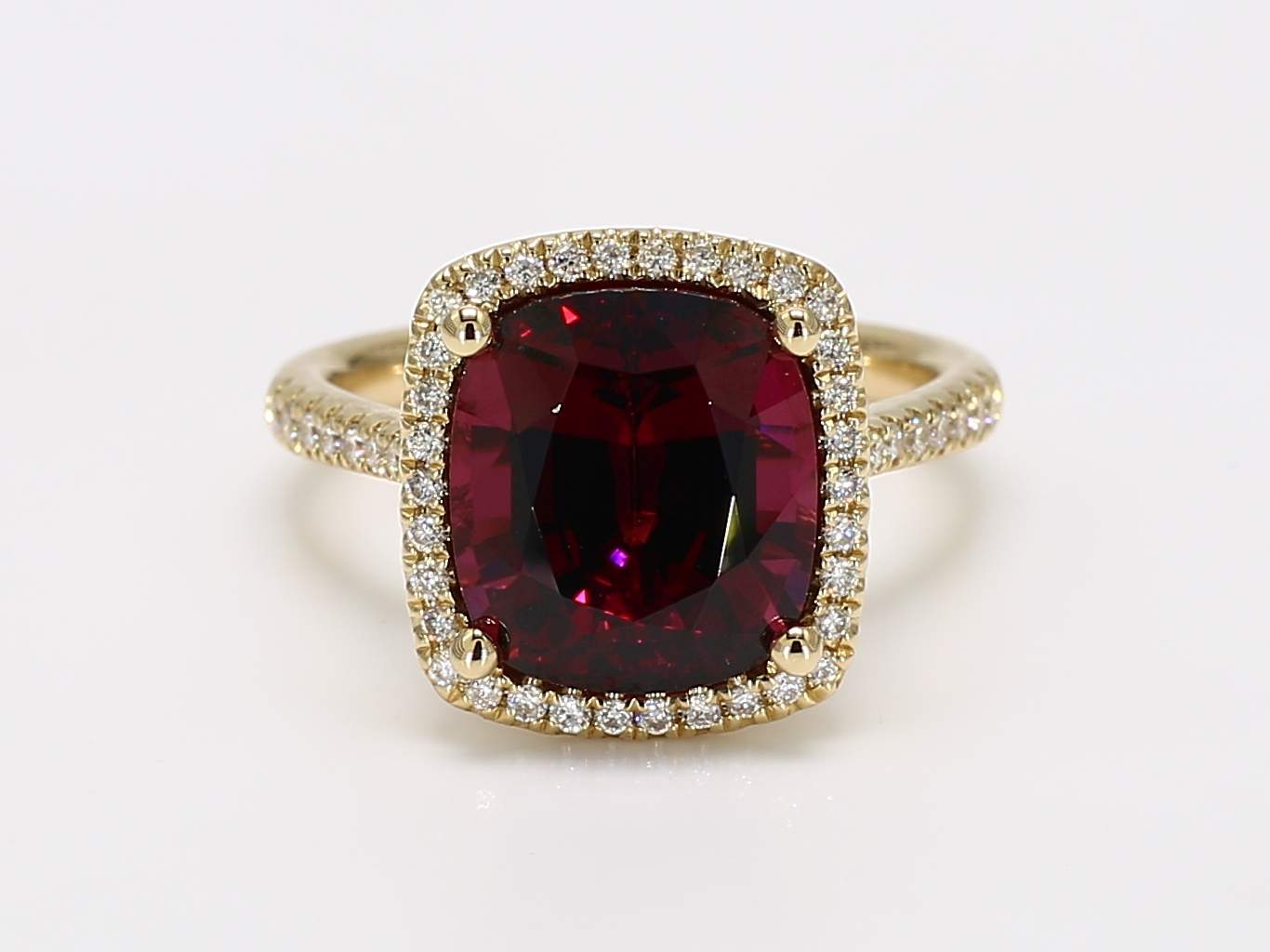 CUSHION RHODOLITE GARNET & ROUND DIAMOND 14KY RING