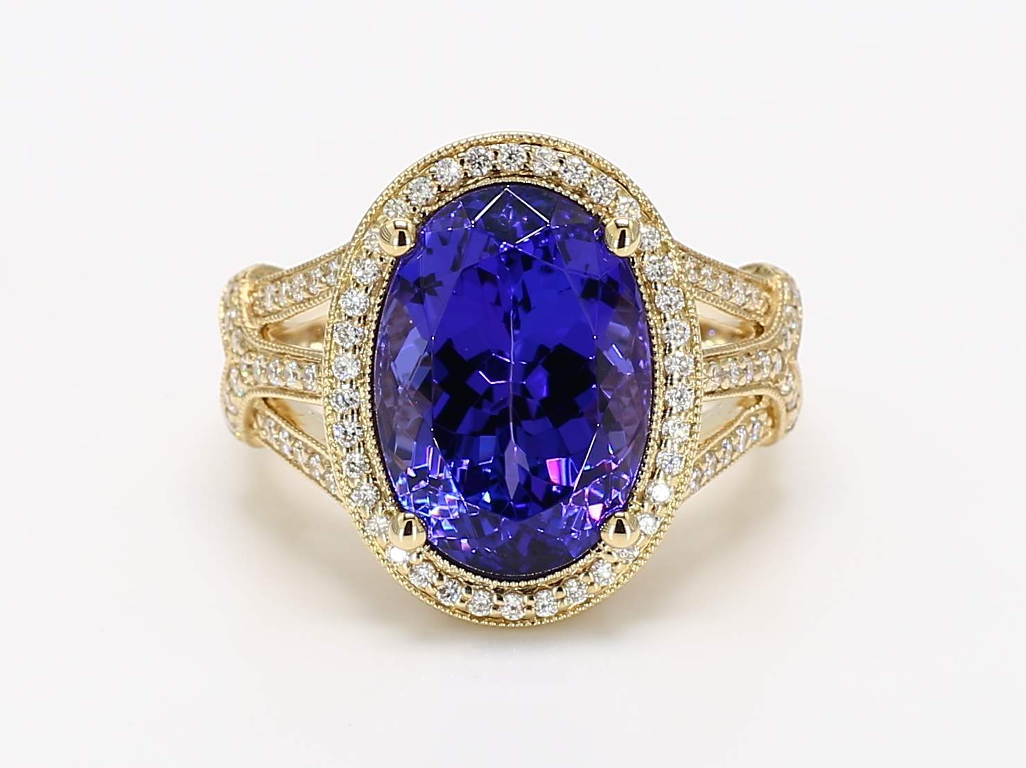 OVAL TANZANITE & ROUND DIAMOND 14KY RING