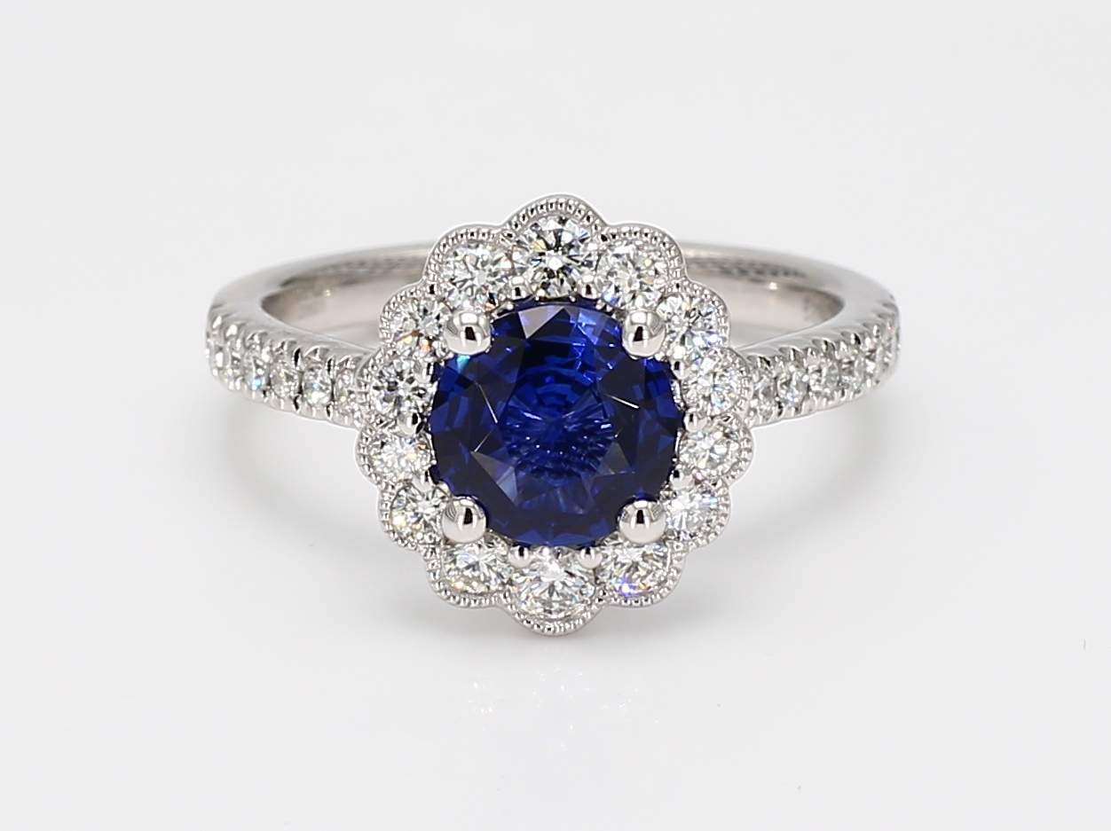 ROUND SAPPHIRE & ROUND DIAMOND PLATINUM RING