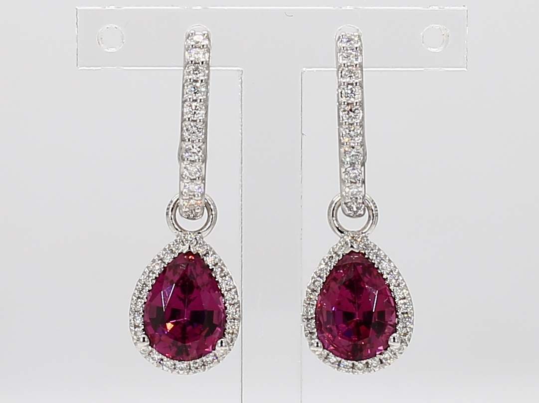 PEAR SHAPE RHODOLITE GARNET & ROUND DIAMOND 14KW EARRING