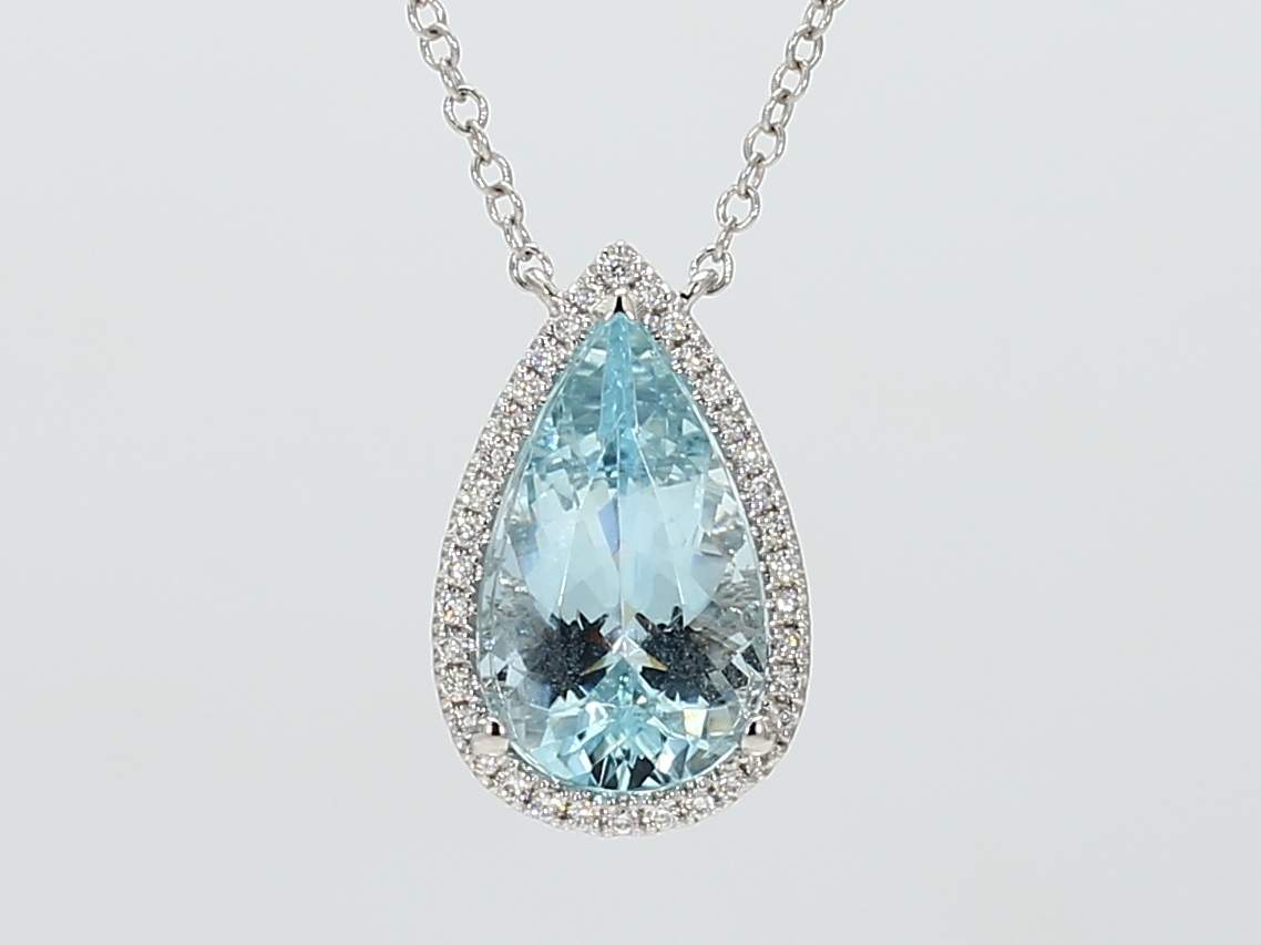 PEAR SHAPE AQUAMARINE & ROUND DIAMOND 14KW NECKLACE
