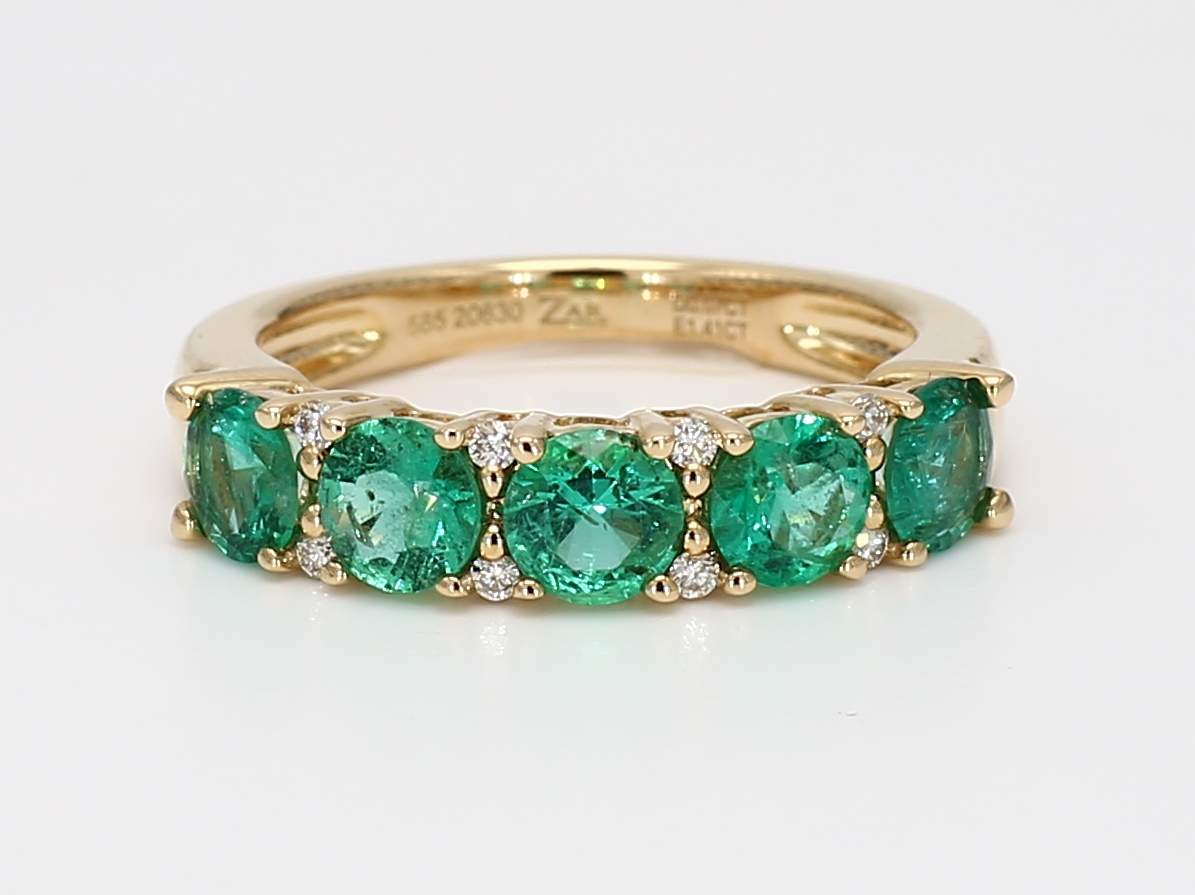 ROUND EMERALD & ROUND DIAMOND 14KY BAND