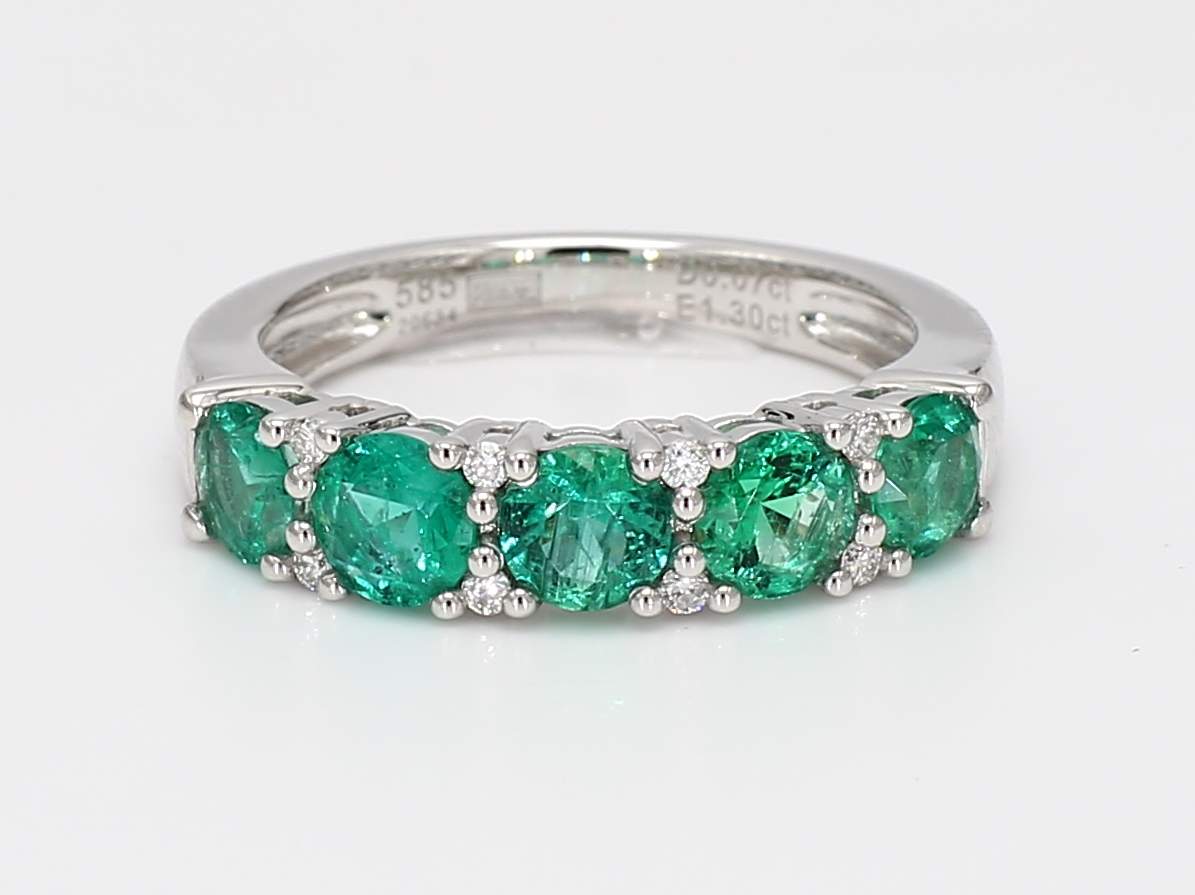 ROUND EMERALD & ROUND DIAMOND 14KW BAND