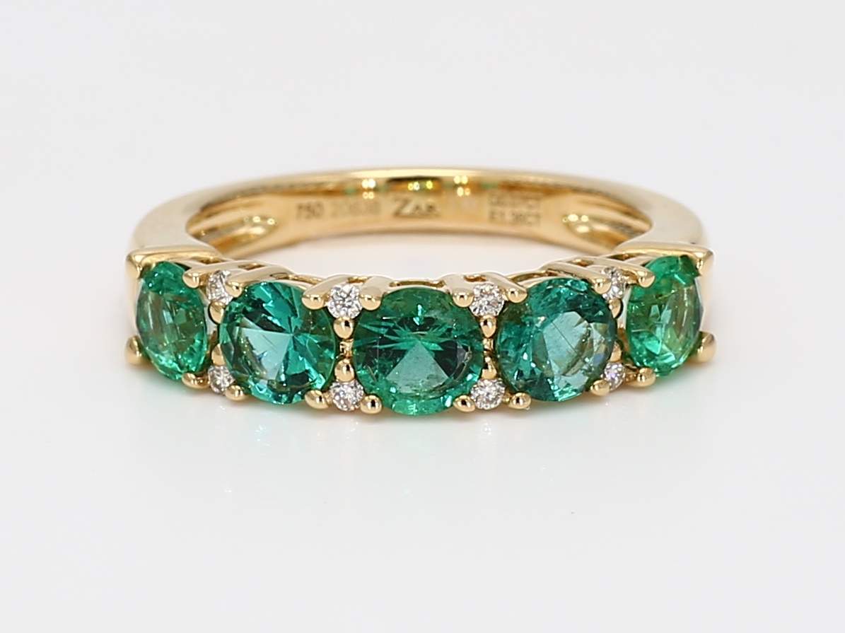 ROUND EMERALD & ROUND DIAMOND 18KY BAND