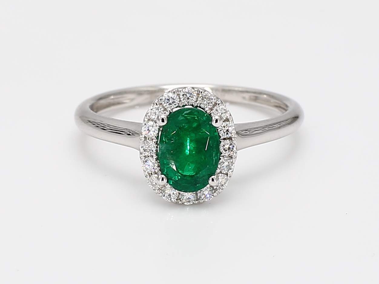 OVAL EMERALD & ROUND DIAMOND 14KW RING