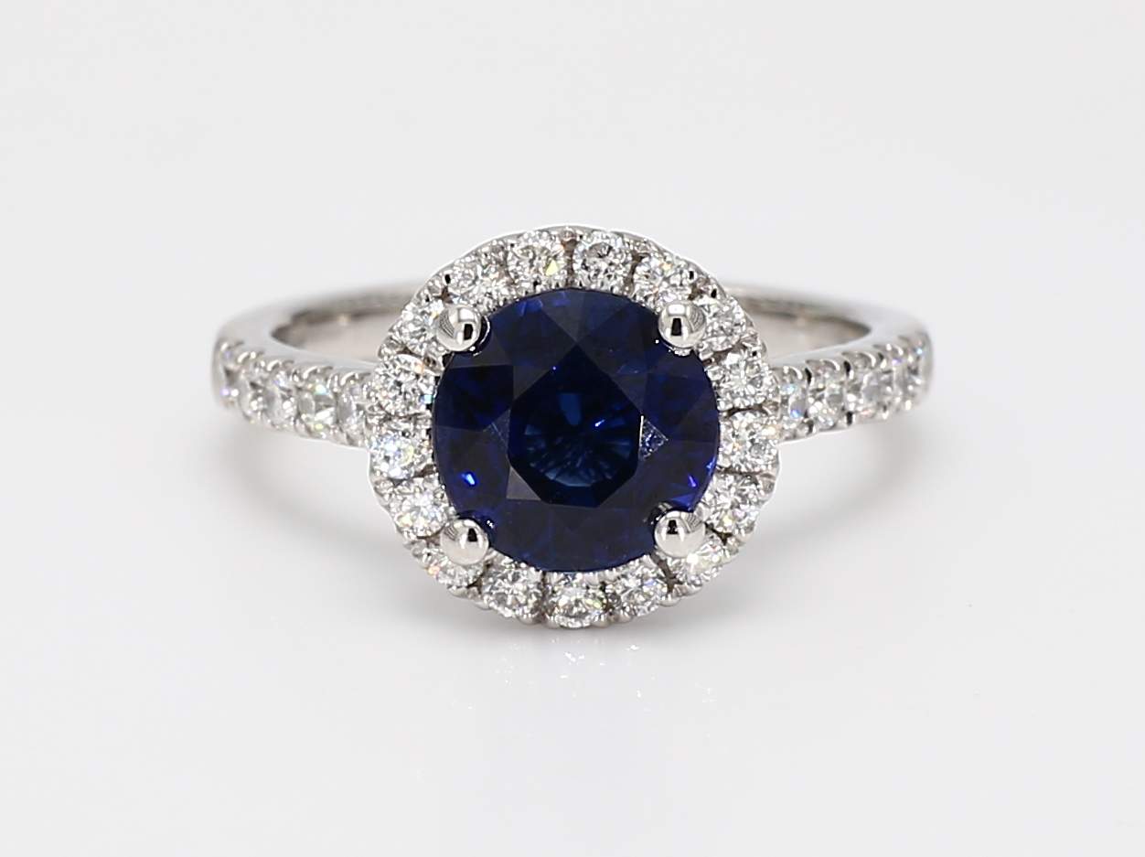 ROUND SAPPHIRE & ROUND DIAMOND PLATINUM RING