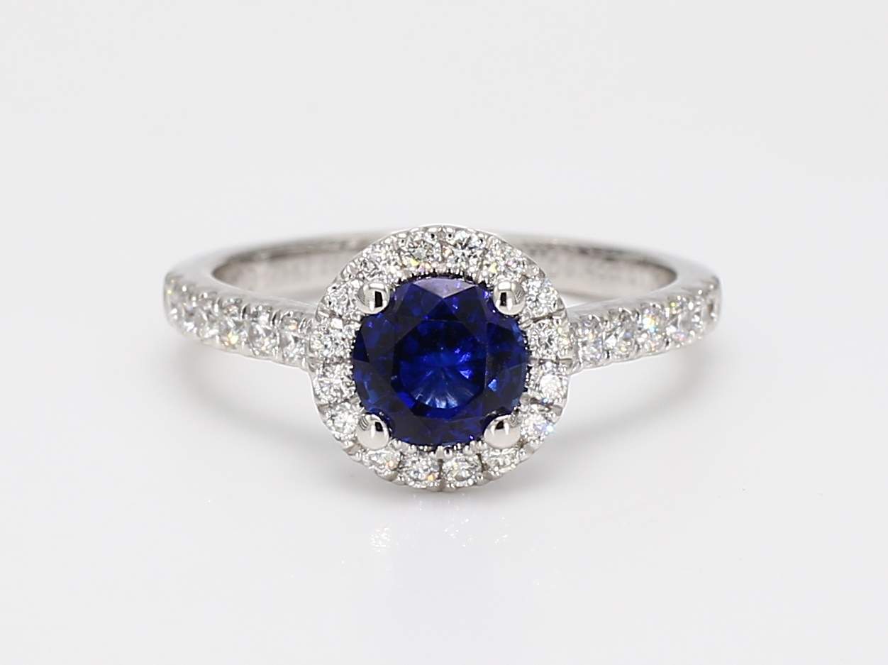 ROUND SAPPHIRE & ROUND DIAMOND PLATINUM RING