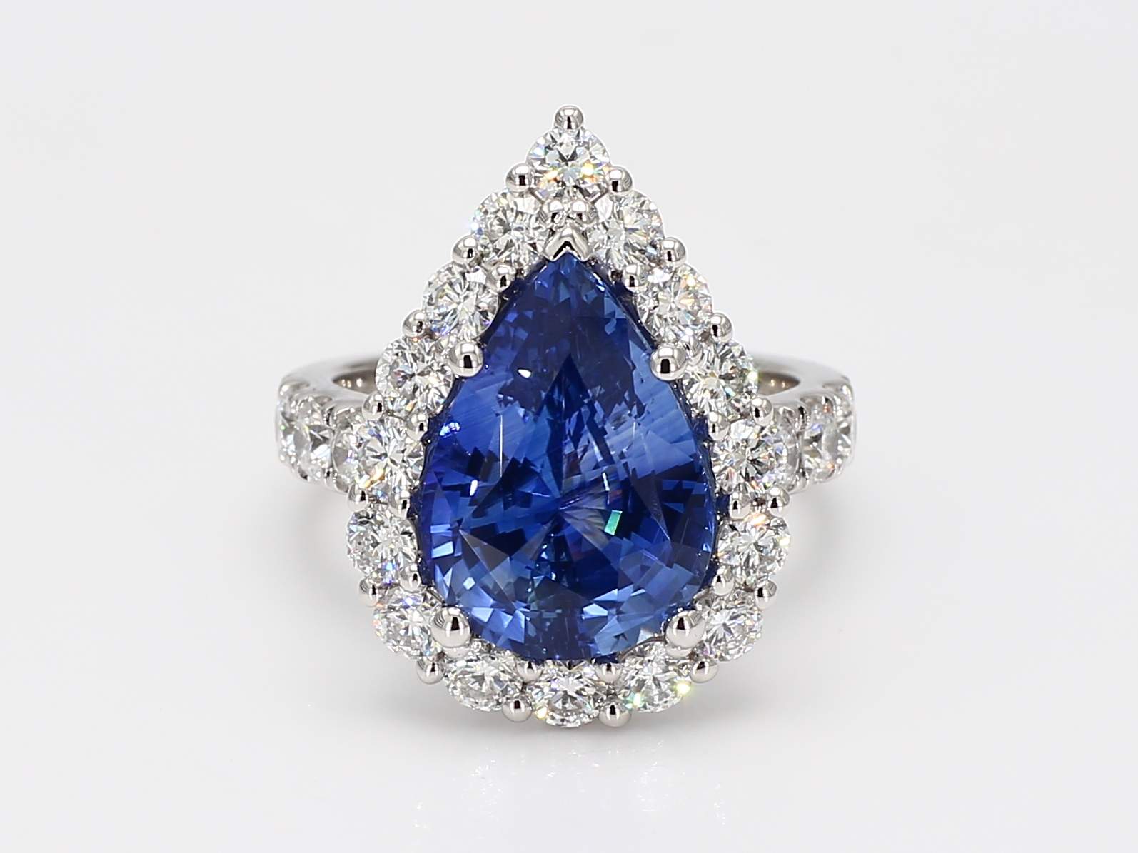 PEAR SHAPE SAPPHIRE CDC 2301439 & ROUND DIAMOND PLATINUM RING