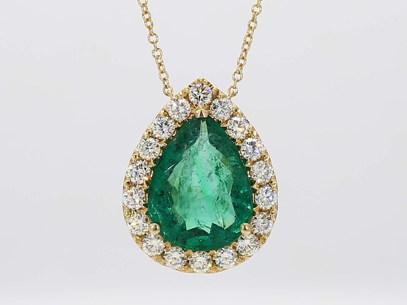 PEAR SHAPE EMERALD CDC 2411314 & ROUND DIAMOND 14KY NECKLACE